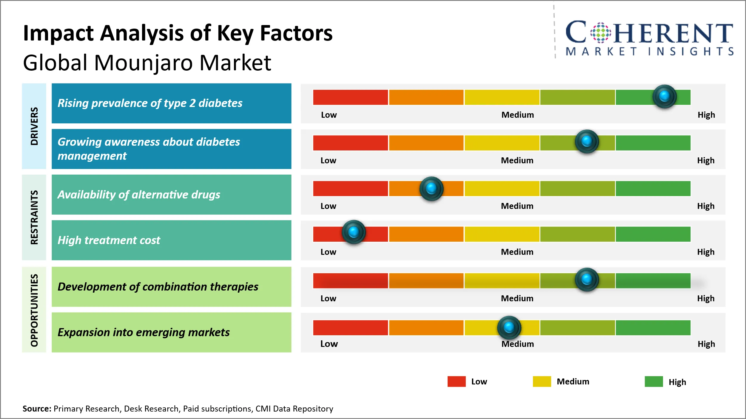 As the population ages and risk factors such as obesity continue to rise, more individuals are being diagnosed with this chronic condition, necessitating improved therapeutic options. Mounjaro’s effectiveness in controlling glycemic levels and reducing associated complications makes it a preferred choice among healthcare providers and patients. Additionally, the growing awareness about managing and preventing diabetes-related complications further accentuates the importance of treatments like Mounjaro. This expanding patient base with unmet medical needs amplifies the demand for innovative and efficient diabetes treatments, positioning Mounjaro favorably in a market shaped by a persistent increase in type 2 diabetes prevalence.