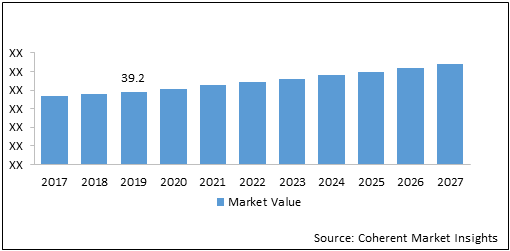 The global air inject check valve market was valued at US$ 39.23 Bn in 2019 and is forecast to reach a value of US$ 54.1 Bn by 2027 at a CAGR of 4.1 % between 2020 and 2027.