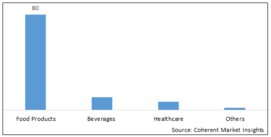 On the basis of end use industry, food products dominated the global die cut lids market in 2025 with around 80% of the market share in terms of revenue, followed by beverages and healthcare, respectively.