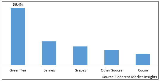 Moreover, growing clinical research validating green tea’s effectiveness in supporting preventive healthcare, aiding in weight management, and reducing the risk of chronic diseases is amplifying its adoption. The segment's strong presence in dietary supplements, cosmetics, and pharmaceutical formulations further cements its leadership in the polyphenol market.